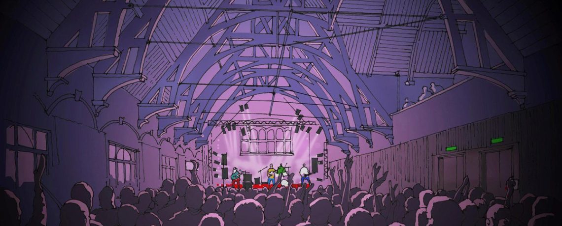 The remaining floors of the building will also see significant remodelling to create recording studios, offices, performance spaces and breakout rooms which will be open to the public and used by local community groups. In addition, essential repairs and restoration work will take place including the exterior stonework, internal stone archways and exposed timber trusses. The hall’s stained glass windows will also be repaired and retained.