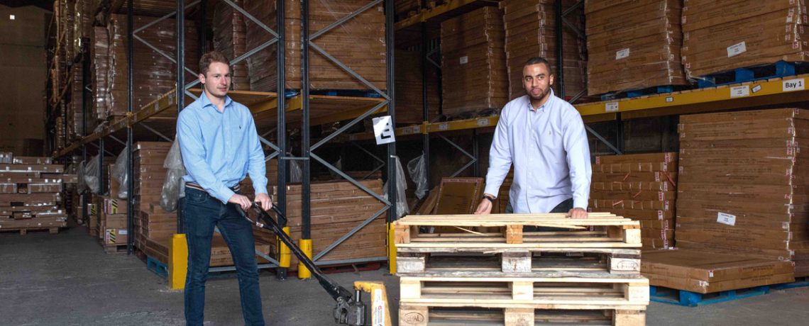 Pictured: Monty George and Dan Beckles unloading pallets at the new Furniturebox warehouse and HQ