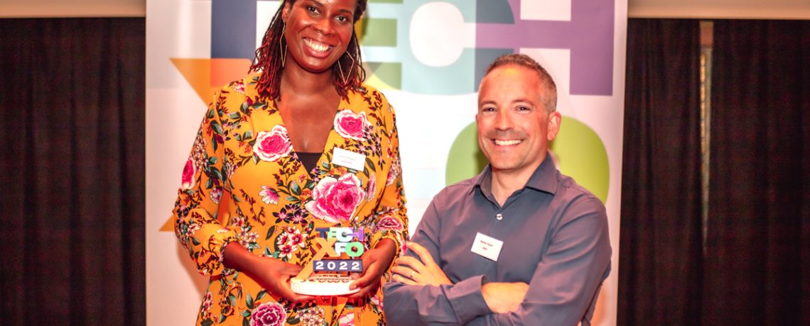 Pictured: Tech-Xpo 2022 winner Joyann Boyce of Inclued with Nathan Guest of VWV