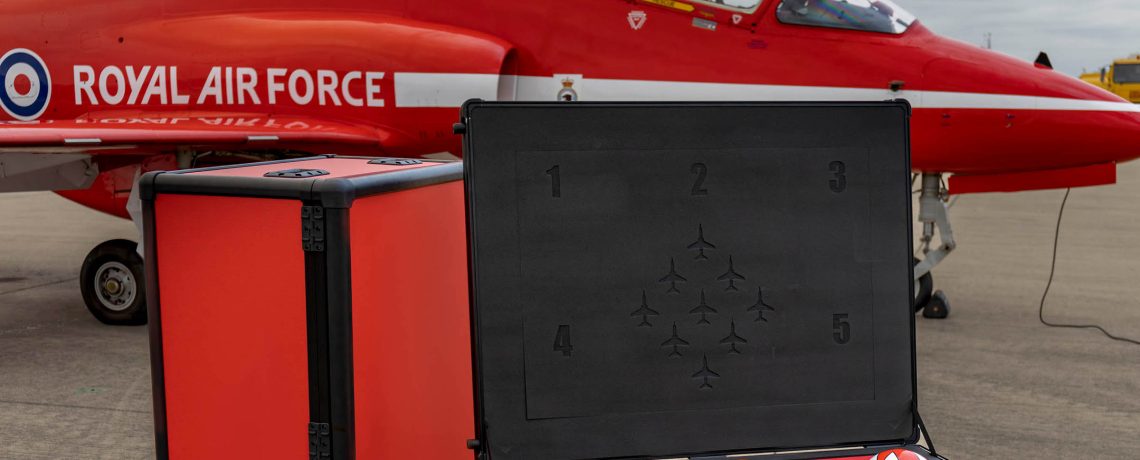 The cases, which also feature laser-etched illustrations of the Red Arrows in the lid, enable the ground team of survival equipment technicians to support the pilots around the world.